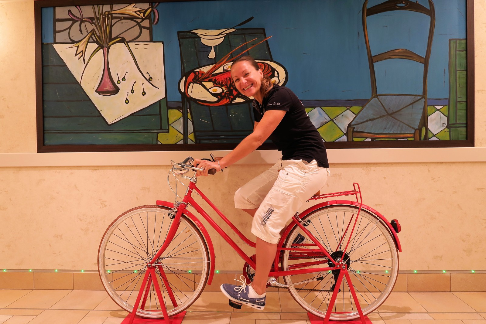 Objavovanie lode a všetkých jej nových prvkov nám teda právom zabralo najviac času: 2 panoramické výťahy na bokoch lode, 2 simulátory Formule 1, bowlingová dráha, športová hala na loptové hry, 4D kino, promenáda cez 2 paluby s reštauráciami a obchodmi zastrešená neustále sa meniacou LED obrazovkou, bazén Apollo v zadnej časti hornej paluby, AquaPark s toboganmi pre deti, vírivé bazény aj s výhľadom na more, super pohodový jazz club na 15. palube, digitálna fotogaléria, špeciálny salón Carouselle pre predstavenia Cirque de Soleil, autentický irish pub, výrobňa čokolády, dvojité schodisko Swarovski cez 2 poschodia, výborná sushi reštaurácia, super aplikáciu MSC for Me do telefónu, množstvo interaktívnych dotykových obrazoviek s informáciami o lodi, exkurziách, programe dňa, predstaveniach v divadle atď. Dali sme si záležať a všetko sme usilovne vyskúšali na vlastnej koži!!