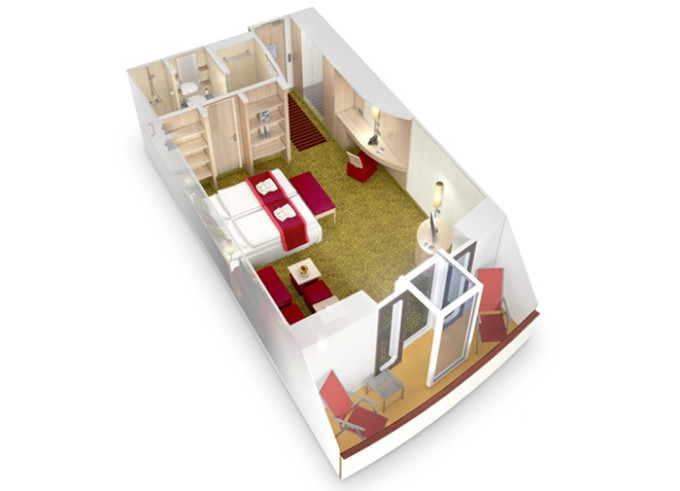 | BP - Kajuta s balkónom Panorama PREMIUM 21,5 m² / balkón 4,5 m². Max 3 osoby. Cenový model Premium + výhody Suite. | 6 450 € 3 225 € za osobu | ||