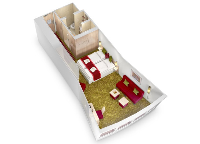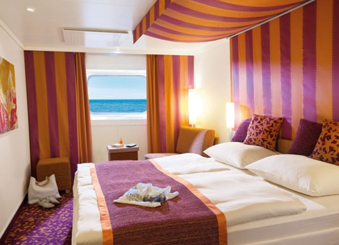 Vo všetkých kajutách sa nachádza regulovateľná klimatizácia, oddelené postele spojiteľné do jednej dvojitej, safe, kúpeľňa so sprchou, sušič na vlasy, telefón, Tv s plochou obrazovkou.