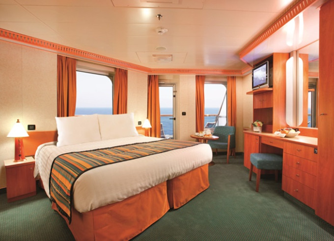 - Ubytovanie v kajute vybranej kategórie. Základné vybavenie: kúpeľňa s WC a sprchovacím kútom, 2 lôžka spojiteľné do manželskej postele, skrine, nočné stolíky, toaletný stolík a stolička, nastaviteľná klimatizácia, interaktívna satelitná TV s plochou obrazovkou, trezor, sušič na vlasy, uteráky a posteľné prádlo, Wi-Fi pripojenie (za poplatok), 24/7 kajutová služba (za poplatok).