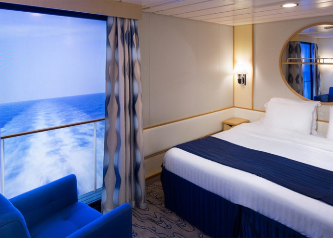 | 4U - Vnútorná kajuta s virtuálnym balkónom 15 m². Obrazovka veľkosti balkónových dverí s premietaným výhľadom. Max 2 osoby. | 1 952 € 488 € za osobu | ||