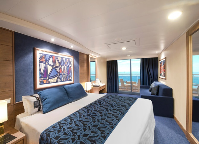 Suite s balkónom: cca 31m² kajuta s manželskou posteľou (na požiadanie 2 oddelené postele) a rozkladacia pohovka. Klimatizácia, kúpeľňa s vaňou, toaletný stolík, priestorná skriňa, interaktívna TV, telefón, minibar, sejf, sušič na vlasy. Balkón so stolíkom a stoličkami. Internetové pripojenie (za poplatok).