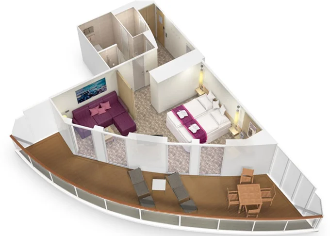 SB - Suite PREMIUM 45 m² + balkón 38 m². 17. paluba. Max 5 osôb. Cenový model Premium + výhody Suite. 6 490 € 3 245 € za osobu